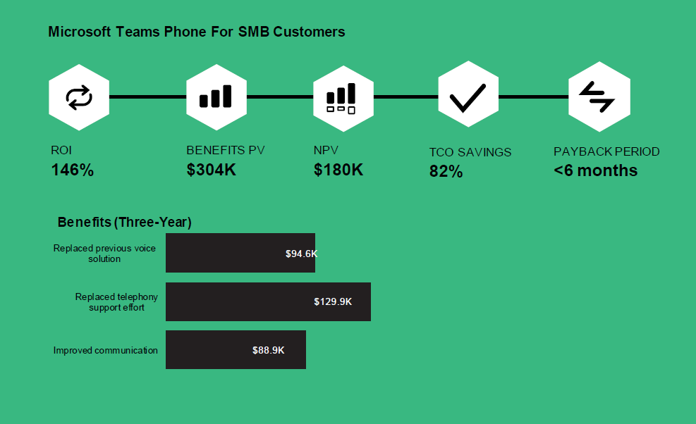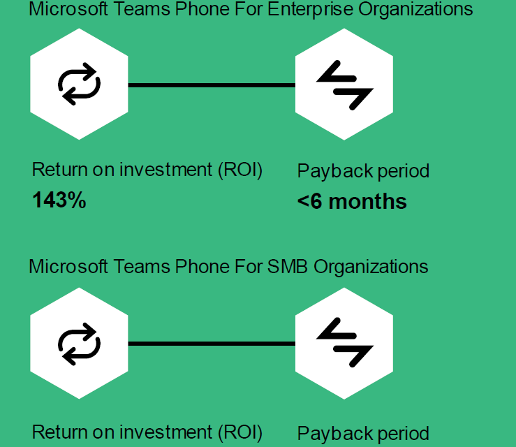 Het Forrester rapport laat ook zien dat Teams Phone gebruikers een sterke ROI hebben. Voor grote bedrijven werd een ROI van 143% berekend, voor middelgrote bedrijven een ROI van 146%. Voor grote bedrijven en mkb-bedrijven was de terugverdientijd minder dan 6 maanden. Investeer je in Teams Phone, dan verdien je dit dus snel terug door besparingen en een hogere productiviteit.